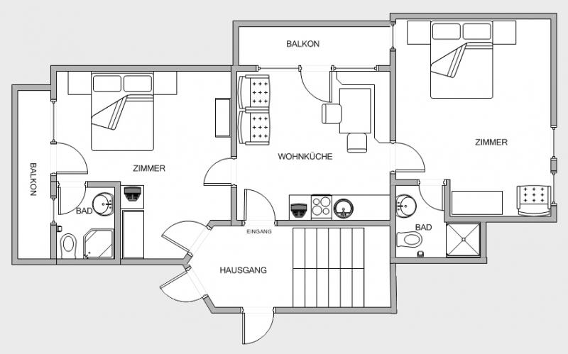 Mit ca. 60 Quadratmeter Wohnfläche bietet unsere Wohnung Edelweiß Platz für bis zu sechs Personen.
